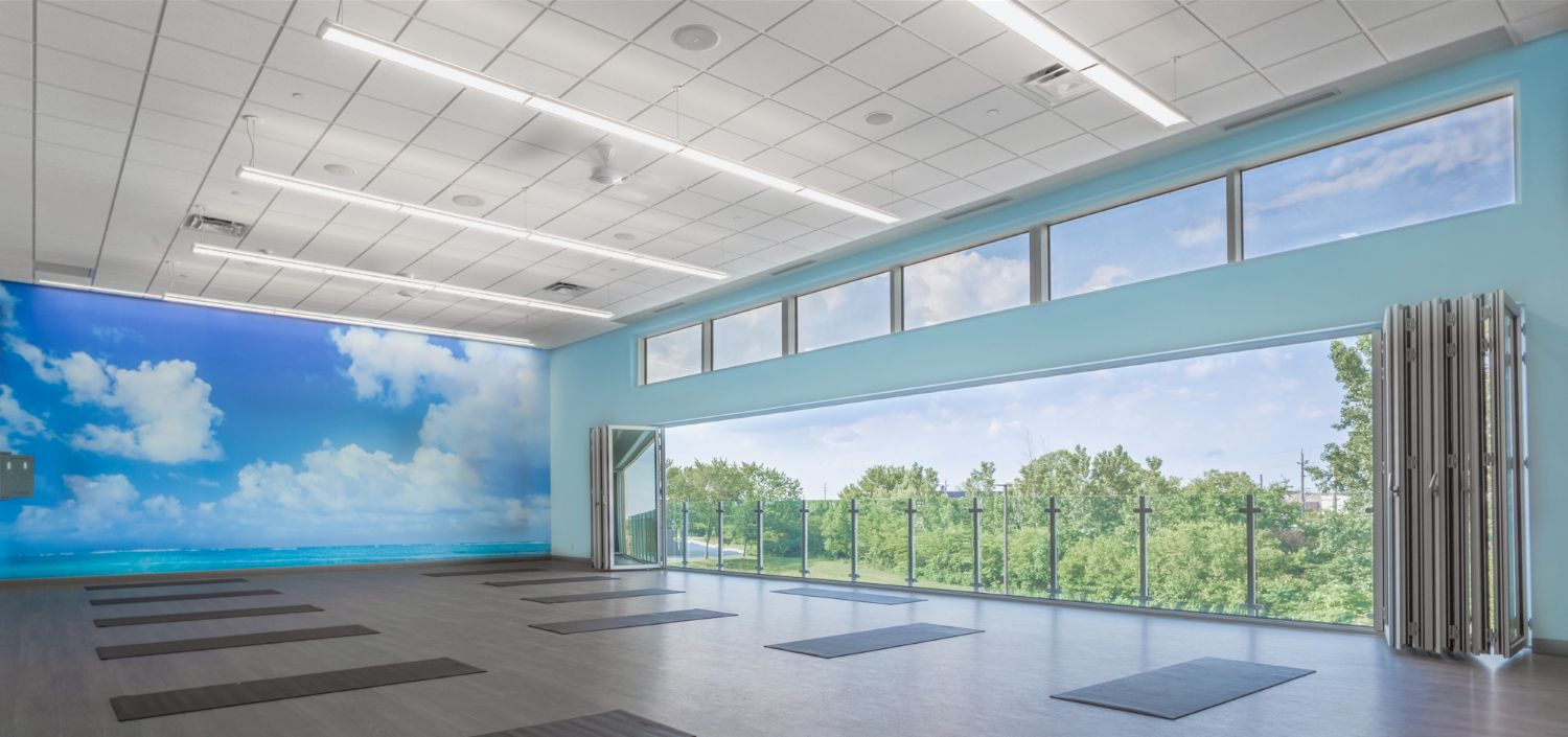 Step into the Sky Studio—MOVATI’s one-of-a-kind open air yoga studio with skylights and retractable ceiling-height windows where fresh air meets focused movement.